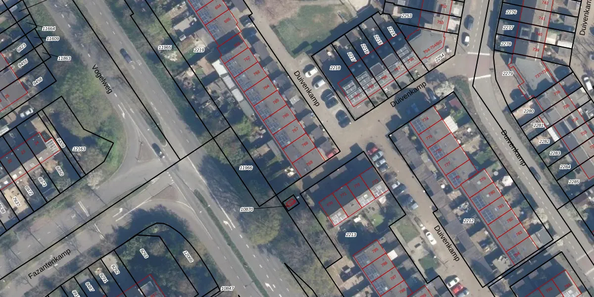 Duivenkamp 768 is gelegen op kadastraal perceel MSN02B2219. Deze kadastrale aanduiding is uniek en wordt gebruikt door het Kadaster om eigendomsrechten en andere zakelijke rechten vast te leggen. Het perceel maakt onderdeel uit van de kadastrale gemeente Maarssen.