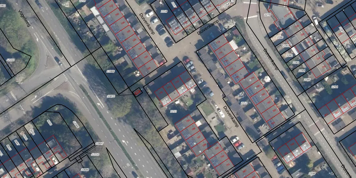 Het perceel waarop Duivenkamp 772 staat heeft een oppervlakte van 1759 m². Dit is een zeer groot perceel. De perceeloppervlakte wordt geregistreerd door het Kadaster. Gedetailleerde informatie over de maten van dit perceel kunt u vinden in het rapport Kadastrale kaart met maatvoering van Duivenkamp 772.