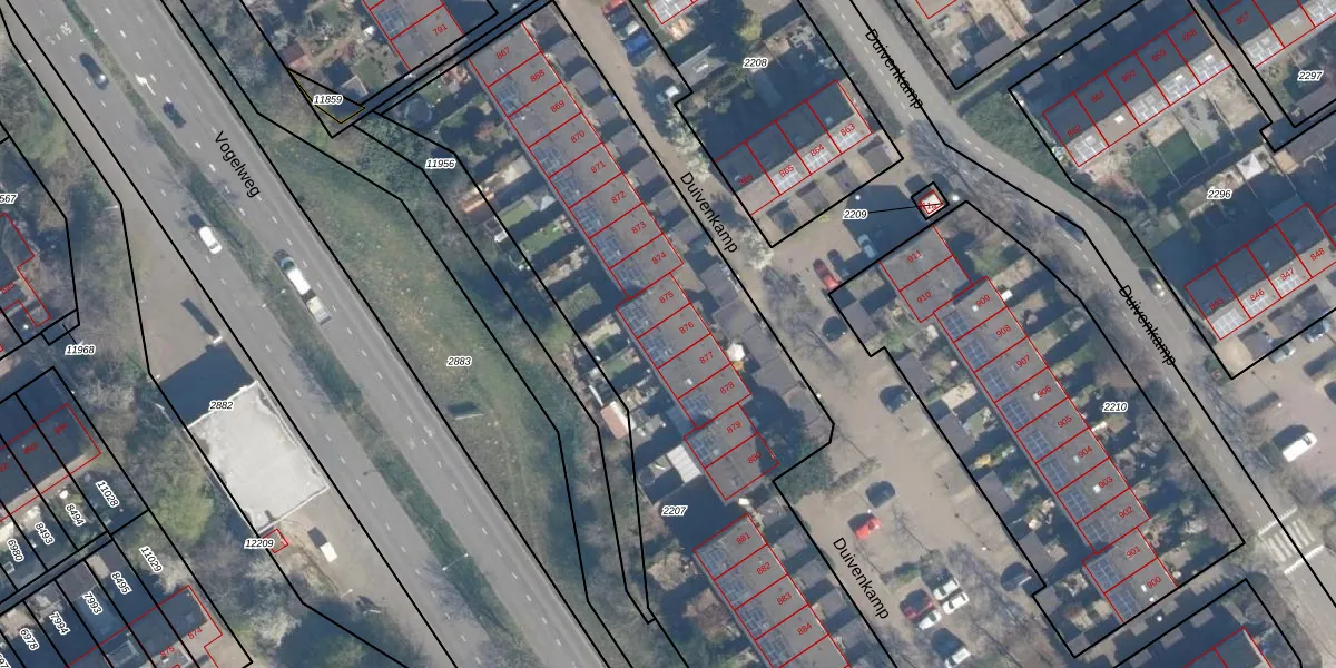 Duivenkamp 876 is gelegen op kadastraal perceel MSN02B2207. Deze kadastrale aanduiding is uniek en wordt gebruikt door het Kadaster om eigendomsrechten en andere zakelijke rechten vast te leggen. Het perceel maakt onderdeel uit van de kadastrale gemeente Maarssen.