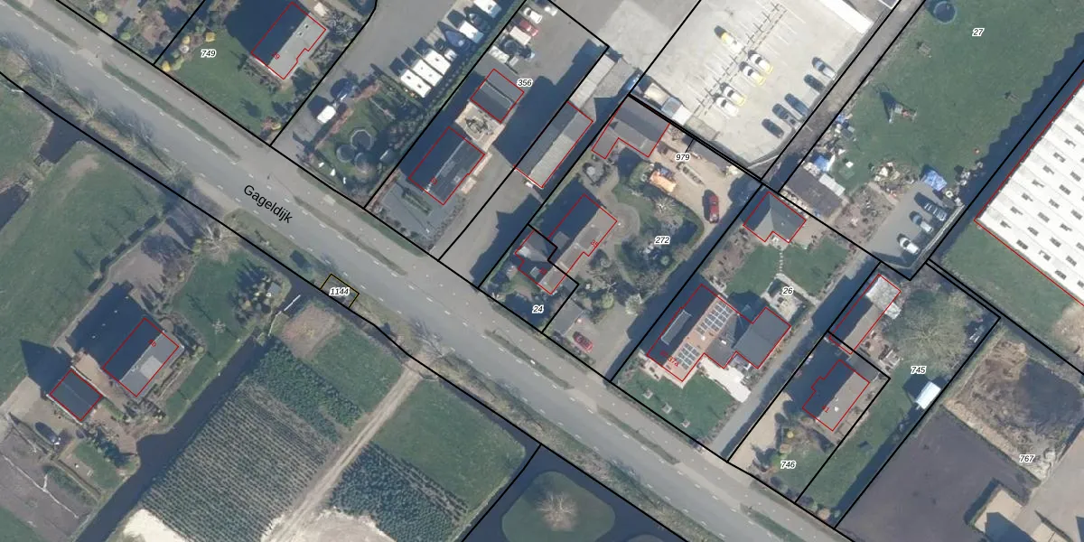 Het perceel waarop Gageldijk 33 staat heeft een oppervlakte van 180 m². Dit is een middelgroot perceel. De perceeloppervlakte wordt geregistreerd door het Kadaster. Gedetailleerde informatie over de maten van dit perceel kunt u vinden in het rapport Kadastrale kaart met maatvoering van Gageldijk 33.
