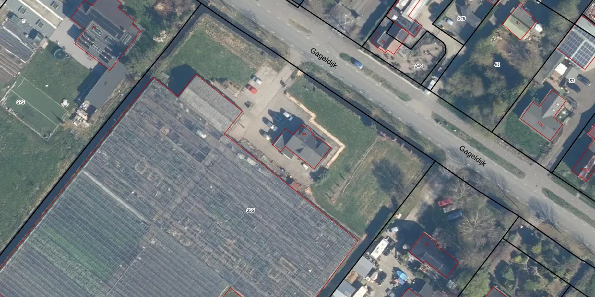 Het perceel waarop Gageldijk 8-a staat heeft een oppervlakte van 1,2 ha. Dit is een zeer groot perceel. De perceeloppervlakte wordt geregistreerd door het Kadaster. Gedetailleerde informatie over de maten van dit perceel kunt u vinden in het rapport Kadastrale kaart met maatvoering van Gageldijk 8-a.