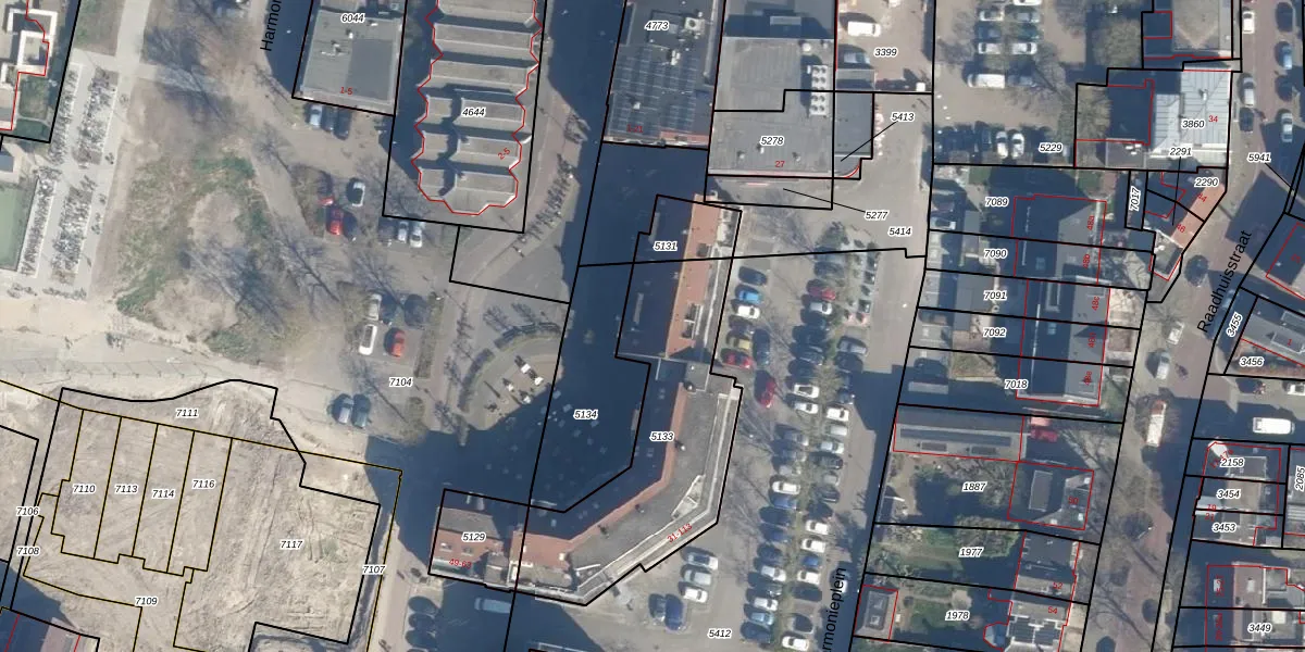 Het perceel waarop Harmonieplein 109 staat heeft een oppervlakte van 855 m². Dit is een groot perceel. De perceeloppervlakte wordt geregistreerd door het Kadaster. Gedetailleerde informatie over de maten van dit perceel kunt u vinden in het rapport Kadastrale kaart met maatvoering van Harmonieplein 109.
