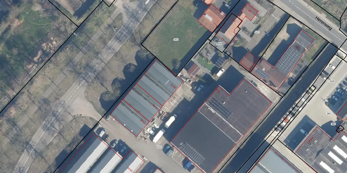 Het perceel waarop Herenweg 64-50 staat heeft een oppervlakte van 1,2 ha. Dit is een zeer groot perceel. De perceeloppervlakte wordt geregistreerd door het Kadaster. Gedetailleerde informatie over de maten van dit perceel kunt u vinden in het rapport Kadastrale kaart met maatvoering van Herenweg 64-50.