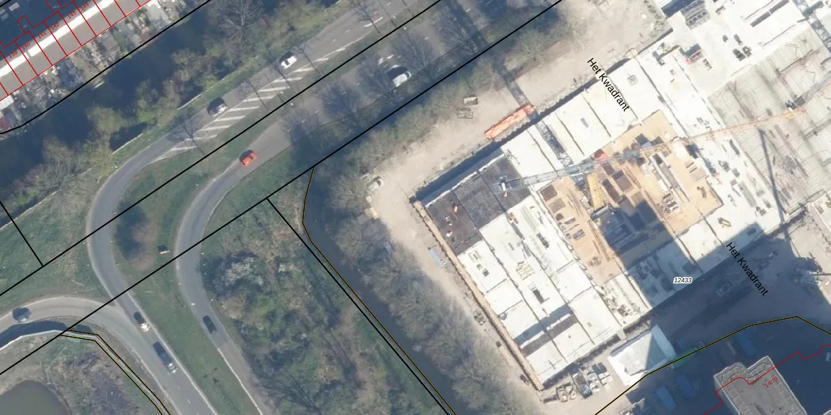 Het perceel waarop Het Kwadrant 375 staat heeft een oppervlakte van 2,1 ha. Dit is een zeer groot perceel. De perceeloppervlakte wordt geregistreerd door het Kadaster. Gedetailleerde informatie over de maten van dit perceel kunt u vinden in het rapport Kadastrale kaart met maatvoering van Het Kwadrant 375.