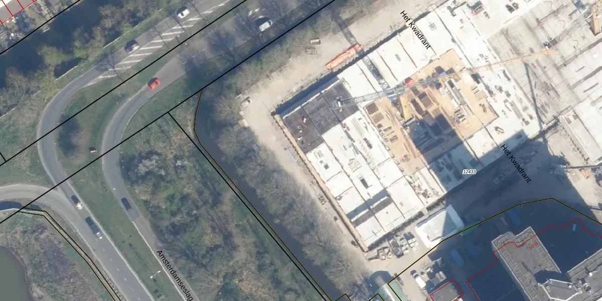 Het perceel waarop Het Kwadrant 401 staat heeft een oppervlakte van 2,1 ha. Dit is een zeer groot perceel. De perceeloppervlakte wordt geregistreerd door het Kadaster. Gedetailleerde informatie over de maten van dit perceel kunt u vinden in het rapport Kadastrale kaart met maatvoering van Het Kwadrant 401.