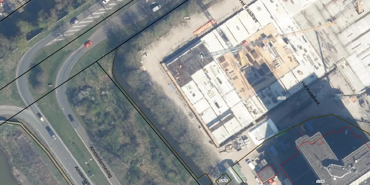 Het perceel waarop Het Kwadrant 410 staat heeft een oppervlakte van 2,1 ha. Dit is een zeer groot perceel. De perceeloppervlakte wordt geregistreerd door het Kadaster. Gedetailleerde informatie over de maten van dit perceel kunt u vinden in het rapport Kadastrale kaart met maatvoering van Het Kwadrant 410.