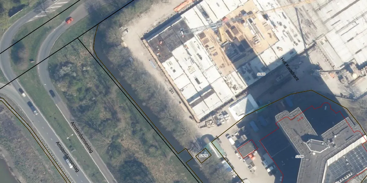 Het perceel waarop Het Kwadrant 434 staat heeft een oppervlakte van 2,1 ha. Dit is een zeer groot perceel. De perceeloppervlakte wordt geregistreerd door het Kadaster. Gedetailleerde informatie over de maten van dit perceel kunt u vinden in het rapport Kadastrale kaart met maatvoering van Het Kwadrant 434.