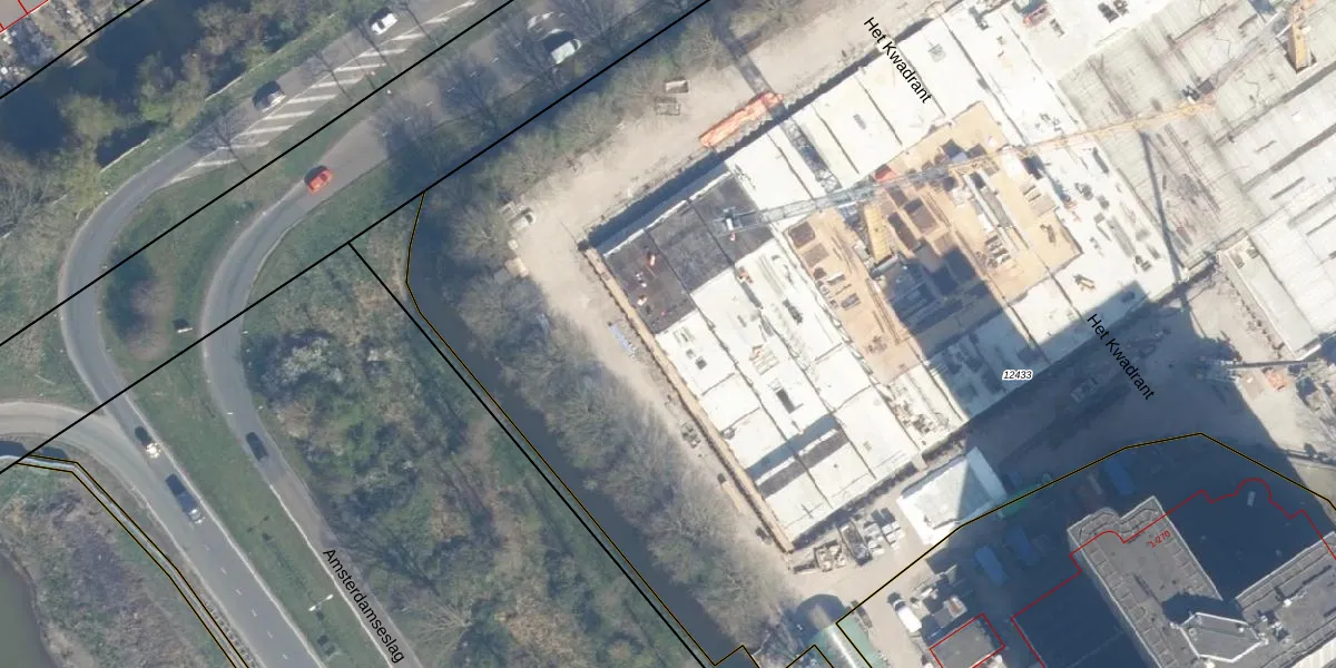 Het perceel waarop Het Kwadrant 455 staat heeft een oppervlakte van 2,1 ha. Dit is een zeer groot perceel. De perceeloppervlakte wordt geregistreerd door het Kadaster. Gedetailleerde informatie over de maten van dit perceel kunt u vinden in het rapport Kadastrale kaart met maatvoering van Het Kwadrant 455.