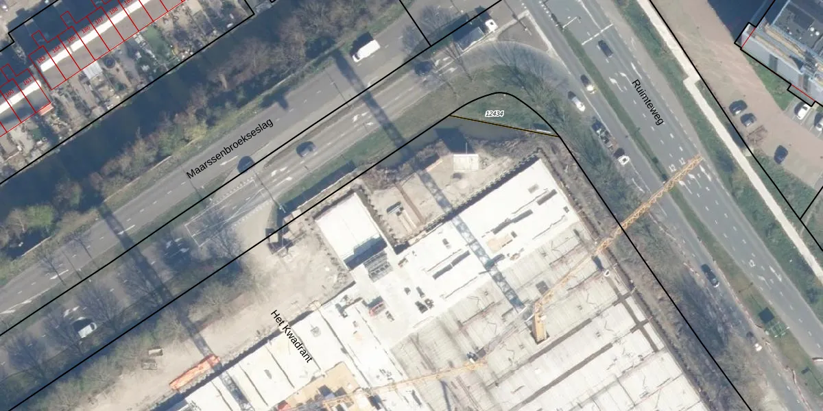Het perceel waarop Het Kwadrant 567 staat heeft een oppervlakte van 2,1 ha. Dit is een zeer groot perceel. De perceeloppervlakte wordt geregistreerd door het Kadaster. Gedetailleerde informatie over de maten van dit perceel kunt u vinden in het rapport Kadastrale kaart met maatvoering van Het Kwadrant 567.
