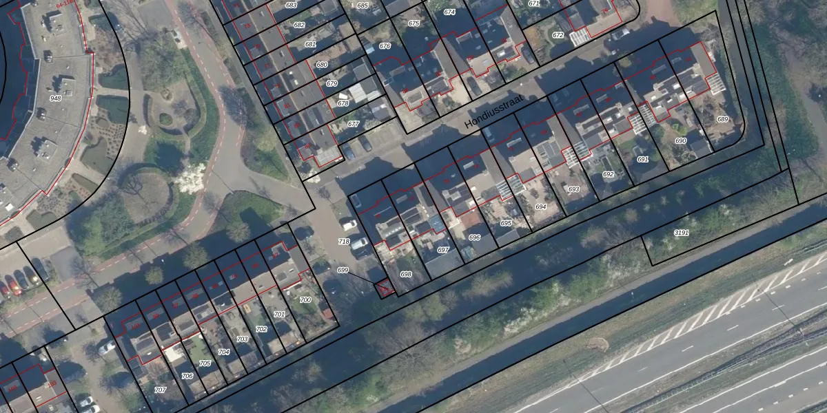 Het perceel waarop Hondiusstraat 77 staat heeft een oppervlakte van 245 m². Dit is een middelgroot perceel. De perceeloppervlakte wordt geregistreerd door het Kadaster. Gedetailleerde informatie over de maten van dit perceel kunt u vinden in het rapport Kadastrale kaart met maatvoering van Hondiusstraat 77.