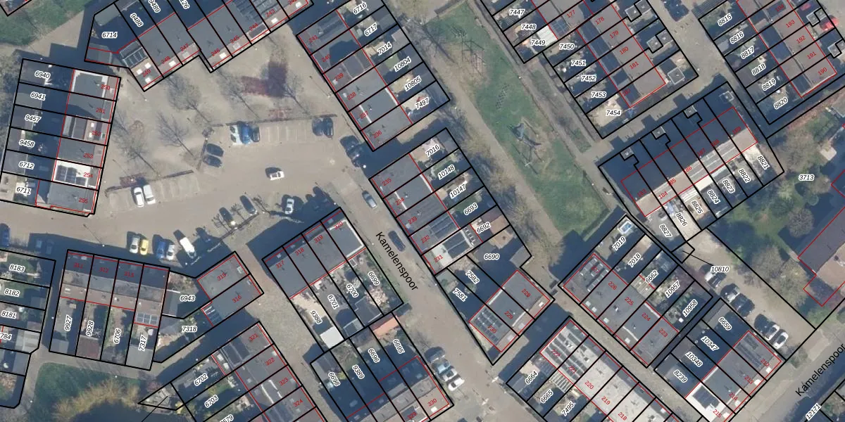 Het perceel waarop Kamelenspoor 233 staat heeft een oppervlakte van 119 m². Dit is een middelgroot perceel. De perceeloppervlakte wordt geregistreerd door het Kadaster. Gedetailleerde informatie over de maten van dit perceel kunt u vinden in het rapport Kadastrale kaart met maatvoering van Kamelenspoor 233.