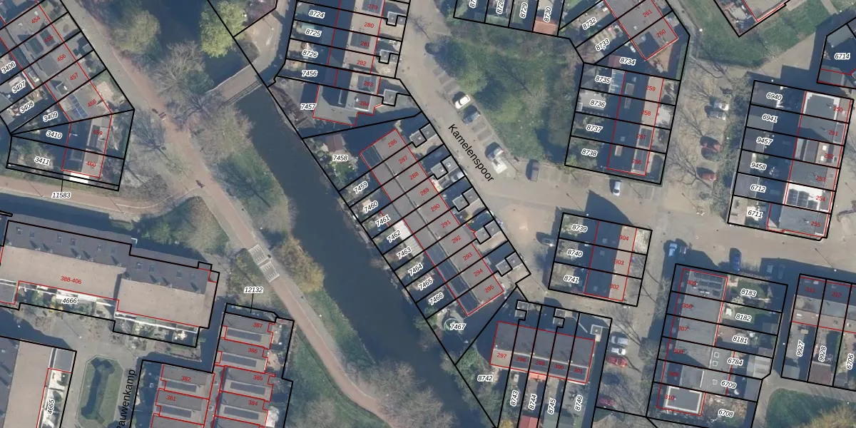 Kamelenspoor 290 is gelegen op kadastraal perceel MSN02B7462. Deze kadastrale aanduiding is uniek en wordt gebruikt door het Kadaster om eigendomsrechten en andere zakelijke rechten vast te leggen. Het perceel maakt onderdeel uit van de kadastrale gemeente Maarssen.