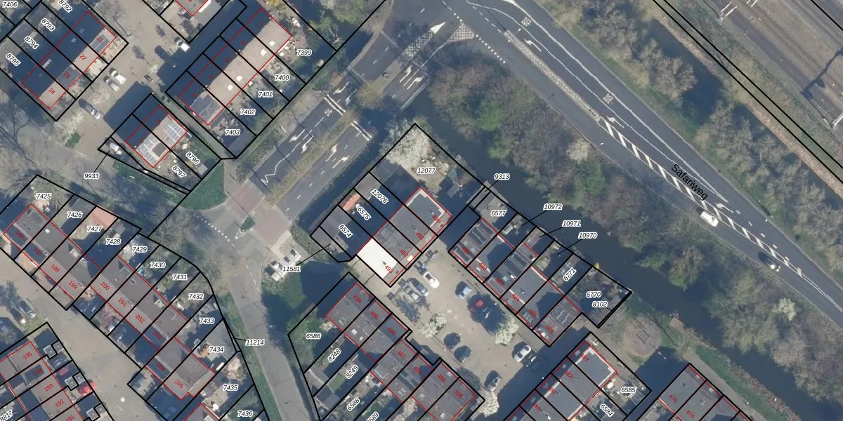 Gebruik de zoekbalk of klik op een perceel voor informatie over de adressen binnen dit perceel.
