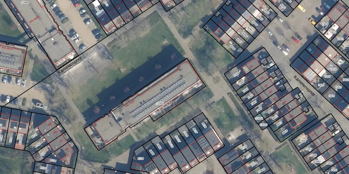 Het perceel waarop Kamelenspoor 79-8 staat heeft een oppervlakte van 1225 m². Dit is een zeer groot perceel. De perceeloppervlakte wordt geregistreerd door het Kadaster. Gedetailleerde informatie over de maten van dit perceel kunt u vinden in het rapport Kadastrale kaart met maatvoering van Kamelenspoor 79-8.