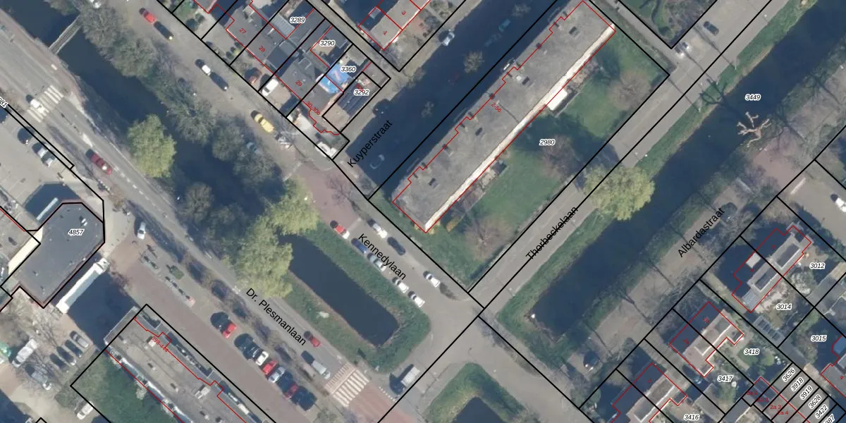 Het perceel waarop Kuyperstraat 2 staat heeft een oppervlakte van 2273 m². Dit is een zeer groot perceel. De perceeloppervlakte wordt geregistreerd door het Kadaster. Gedetailleerde informatie over de maten van dit perceel kunt u vinden in het rapport Kadastrale kaart met maatvoering van Kuyperstraat 2.