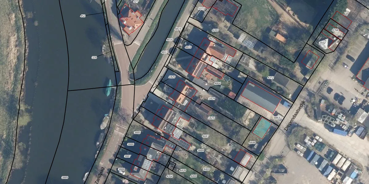 Gebruik de zoekbalk of klik op een perceel voor informatie over de adressen binnen dit perceel.