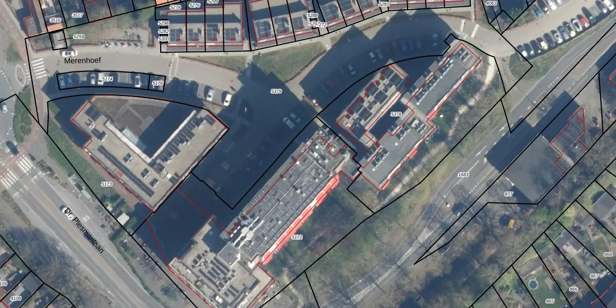 Het perceel waarop Merenhoef 111 staat heeft een oppervlakte van 2650 m². Dit is een zeer groot perceel. De perceeloppervlakte wordt geregistreerd door het Kadaster. Gedetailleerde informatie over de maten van dit perceel kunt u vinden in het rapport Kadastrale kaart met maatvoering van Merenhoef 111.