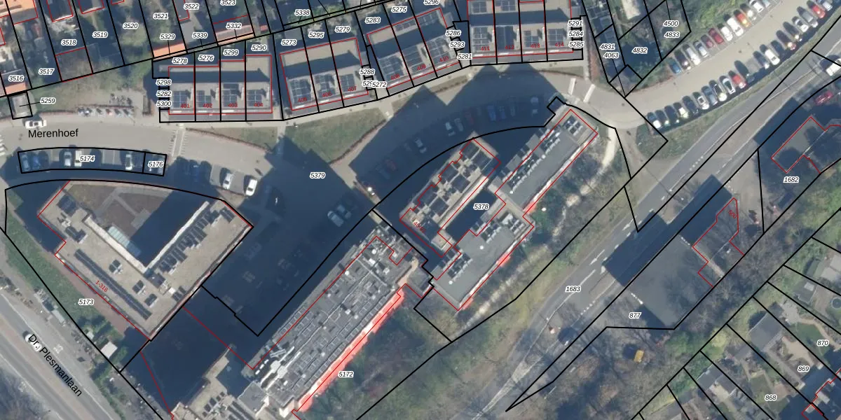 Het perceel waarop Merenhoef 49 staat heeft een oppervlakte van 1837 m². Dit is een zeer groot perceel. De perceeloppervlakte wordt geregistreerd door het Kadaster. Gedetailleerde informatie over de maten van dit perceel kunt u vinden in het rapport Kadastrale kaart met maatvoering van Merenhoef 49.