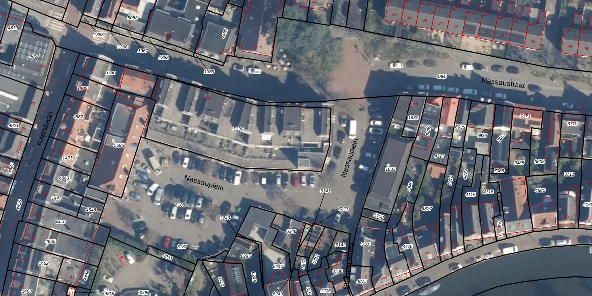 Het perceel waarop Nassaustraat 39 staat heeft een oppervlakte van 1300 m². Dit is een zeer groot perceel. De perceeloppervlakte wordt geregistreerd door het Kadaster. Gedetailleerde informatie over de maten van dit perceel kunt u vinden in het rapport Kadastrale kaart met maatvoering van Nassaustraat 39.