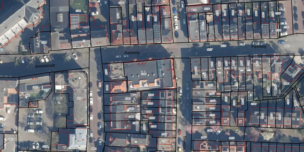 Het perceel waarop Parkweg 2-26 staat heeft een oppervlakte van 655 m². Dit is een groot perceel. De perceeloppervlakte wordt geregistreerd door het Kadaster. Gedetailleerde informatie over de maten van dit perceel kunt u vinden in het rapport Kadastrale kaart met maatvoering van Parkweg 2-26.