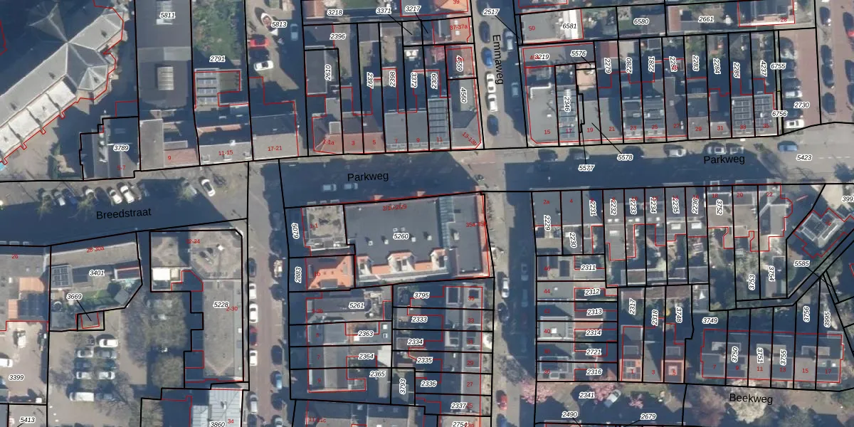 Het perceel waarop Parkweg 2-21 staat heeft een oppervlakte van 655 m². Dit is een groot perceel. De perceeloppervlakte wordt geregistreerd door het Kadaster. Gedetailleerde informatie over de maten van dit perceel kunt u vinden in het rapport Kadastrale kaart met maatvoering van Parkweg 2-21.