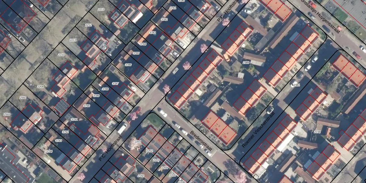 P.C. Hooftstraat 20 is gelegen op kadastraal perceel MSV00A2389. Deze kadastrale aanduiding is uniek en wordt gebruikt door het Kadaster om eigendomsrechten en andere zakelijke rechten vast te leggen. Het perceel maakt onderdeel uit van de kadastrale gemeente Maarsseveen.