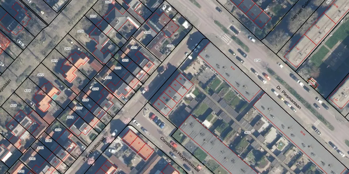 P.C. Hooftstraat 44 is gelegen op kadastraal perceel MSV00A3612. Deze kadastrale aanduiding is uniek en wordt gebruikt door het Kadaster om eigendomsrechten en andere zakelijke rechten vast te leggen. Het perceel maakt onderdeel uit van de kadastrale gemeente Maarsseveen.