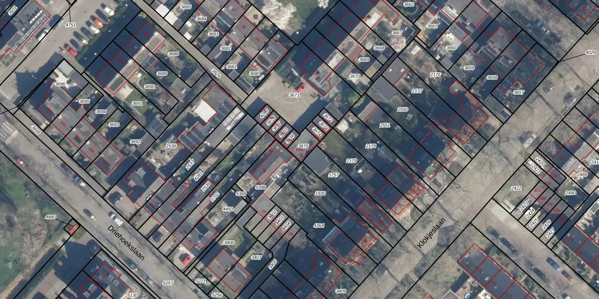 Gebruik de zoekbalk of klik op een perceel voor informatie over de adressen binnen dit perceel.