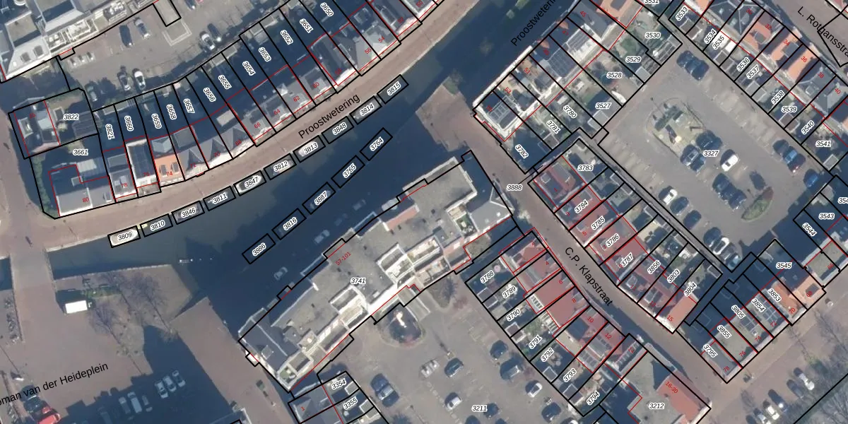 Het perceel waarop Proostwetering 63 staat heeft een oppervlakte van 1385 m². Dit is een zeer groot perceel. De perceeloppervlakte wordt geregistreerd door het Kadaster. Gedetailleerde informatie over de maten van dit perceel kunt u vinden in het rapport Kadastrale kaart met maatvoering van Proostwetering 63.