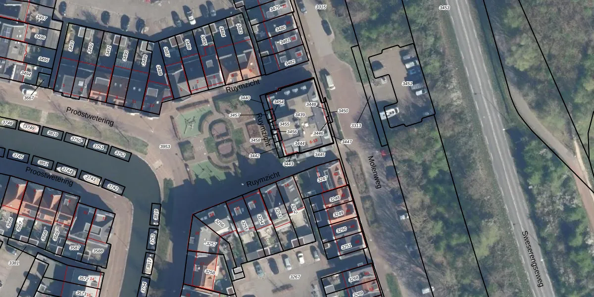 Ruymzicht 13 is gelegen op kadastraal perceel MSN02E3439. Deze kadastrale aanduiding is uniek en wordt gebruikt door het Kadaster om eigendomsrechten en andere zakelijke rechten vast te leggen. Het perceel maakt onderdeel uit van de kadastrale gemeente Maarssen.