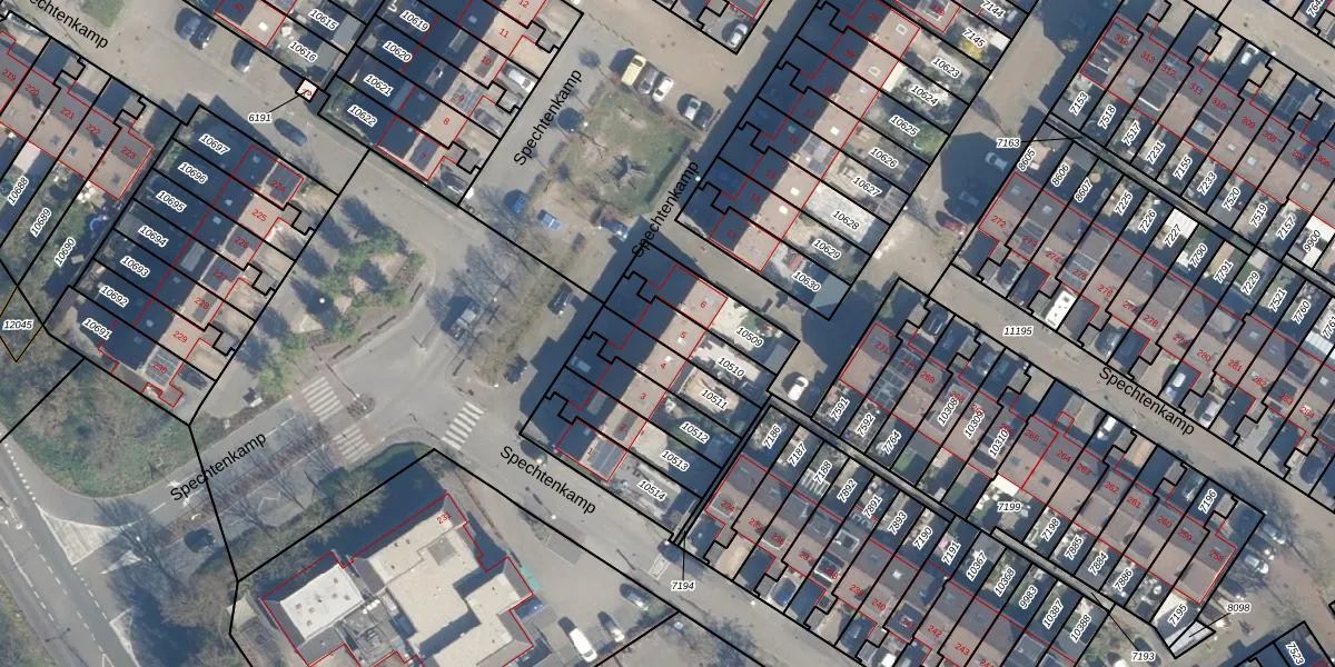 Spechtenkamp 5 is gelegen op kadastraal perceel MSN02B10510. Deze kadastrale aanduiding is uniek en wordt gebruikt door het Kadaster om eigendomsrechten en andere zakelijke rechten vast te leggen. Het perceel maakt onderdeel uit van de kadastrale gemeente Maarssen.