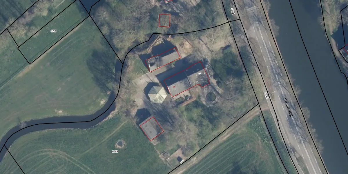 Het perceel waarop Straatweg 21 staat heeft een oppervlakte van 8500 m². Dit is een zeer groot perceel. De perceeloppervlakte wordt geregistreerd door het Kadaster. Gedetailleerde informatie over de maten van dit perceel kunt u vinden in het rapport Kadastrale kaart met maatvoering van Straatweg 21.