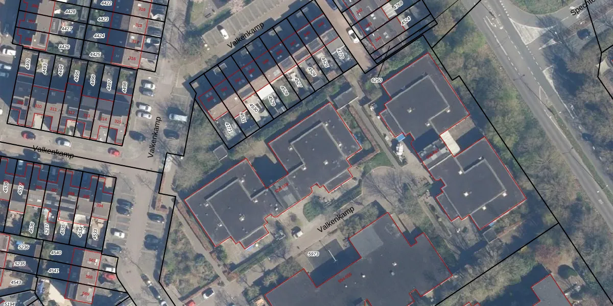 Het perceel waarop Valkenkamp 558 staat heeft een oppervlakte van 9925 m². Dit is een zeer groot perceel. De perceeloppervlakte wordt geregistreerd door het Kadaster. Gedetailleerde informatie over de maten van dit perceel kunt u vinden in het rapport Kadastrale kaart met maatvoering van Valkenkamp 558.