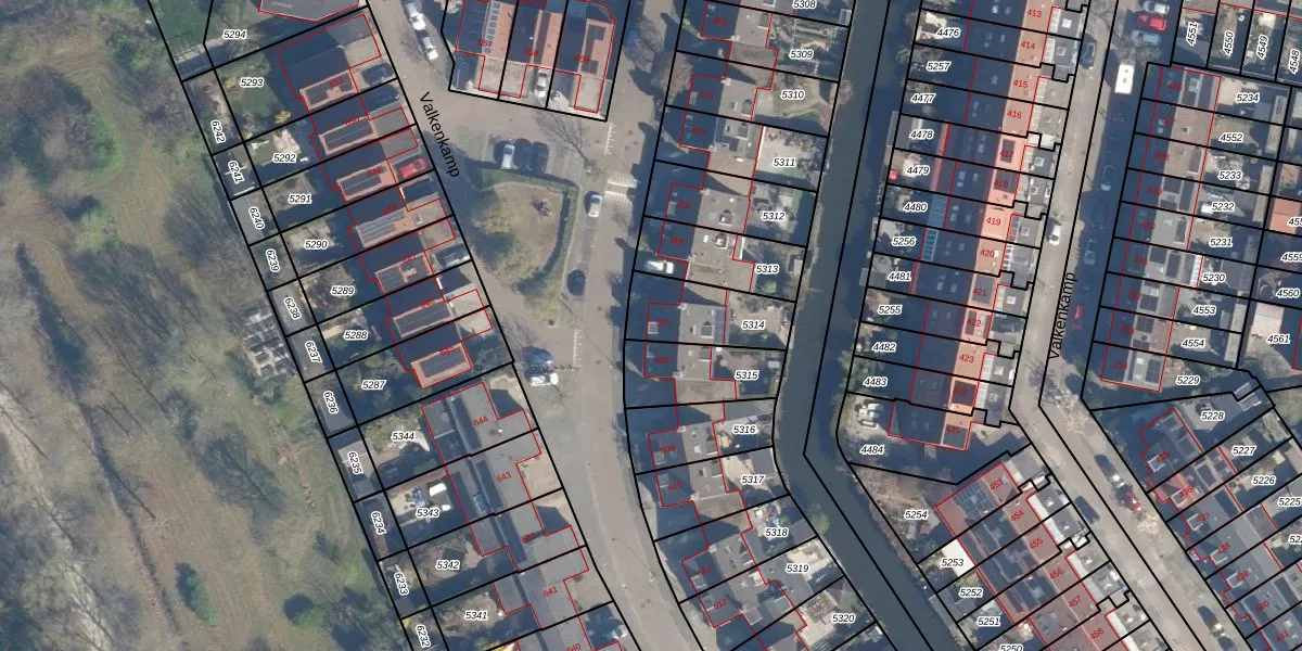 Valkenkamp 607 is gelegen op kadastraal perceel MSN02B5314. Deze kadastrale aanduiding is uniek en wordt gebruikt door het Kadaster om eigendomsrechten en andere zakelijke rechten vast te leggen. Het perceel maakt onderdeel uit van de kadastrale gemeente Maarssen.