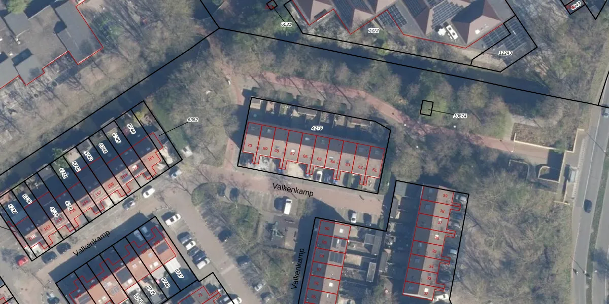 Het perceel waarop Valkenkamp 66 staat heeft een oppervlakte van 1084 m². Dit is een zeer groot perceel. De perceeloppervlakte wordt geregistreerd door het Kadaster. Gedetailleerde informatie over de maten van dit perceel kunt u vinden in het rapport Kadastrale kaart met maatvoering van Valkenkamp 66.