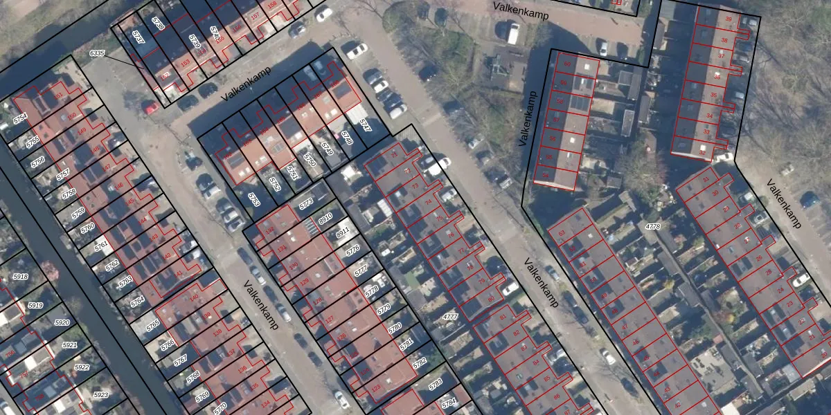 Het perceel waarop Valkenkamp 74 staat heeft een oppervlakte van 2419 m². Dit is een zeer groot perceel. De perceeloppervlakte wordt geregistreerd door het Kadaster. Gedetailleerde informatie over de maten van dit perceel kunt u vinden in het rapport Kadastrale kaart met maatvoering van Valkenkamp 74.