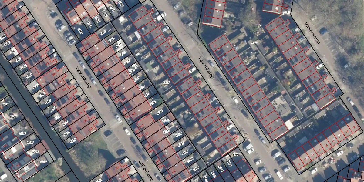 Het perceel waarop Valkenkamp 81 staat heeft een oppervlakte van 2419 m². Dit is een zeer groot perceel. De perceeloppervlakte wordt geregistreerd door het Kadaster. Gedetailleerde informatie over de maten van dit perceel kunt u vinden in het rapport Kadastrale kaart met maatvoering van Valkenkamp 81.
