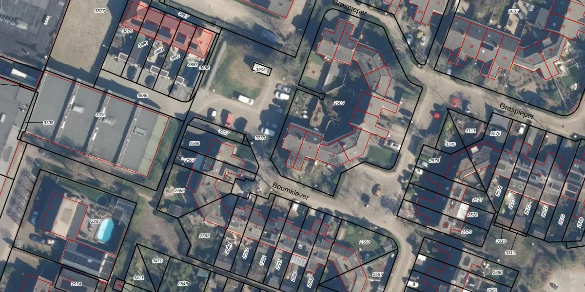 Het perceel waarop Boomklever 1 staat heeft een oppervlakte van 1985 m². Dit is een zeer groot perceel. De perceeloppervlakte wordt geregistreerd door het Kadaster. Gedetailleerde informatie over de maten van dit perceel kunt u vinden in het rapport Kadastrale kaart met maatvoering van Boomklever 1.