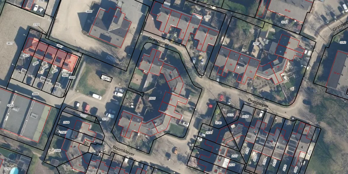 Het perceel waarop Boomklever 13 staat heeft een oppervlakte van 1985 m². Dit is een zeer groot perceel. De perceeloppervlakte wordt geregistreerd door het Kadaster. Gedetailleerde informatie over de maten van dit perceel kunt u vinden in het rapport Kadastrale kaart met maatvoering van Boomklever 13.