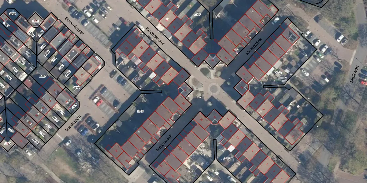 Het perceel waarop Bovenkruier 21 staat heeft een oppervlakte van 2080 m². Dit is een zeer groot perceel. De perceeloppervlakte wordt geregistreerd door het Kadaster. Gedetailleerde informatie over de maten van dit perceel kunt u vinden in het rapport Kadastrale kaart met maatvoering van Bovenkruier 21.