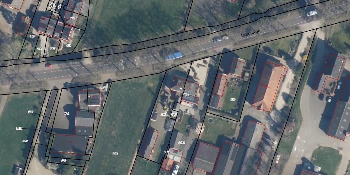 Het perceel waarop Dorpsweg 176 staat heeft een oppervlakte van 742 m². Dit is een groot perceel. De perceeloppervlakte wordt geregistreerd door het Kadaster. Gedetailleerde informatie over de maten van dit perceel kunt u vinden in het rapport Kadastrale kaart met maatvoering van Dorpsweg 176.