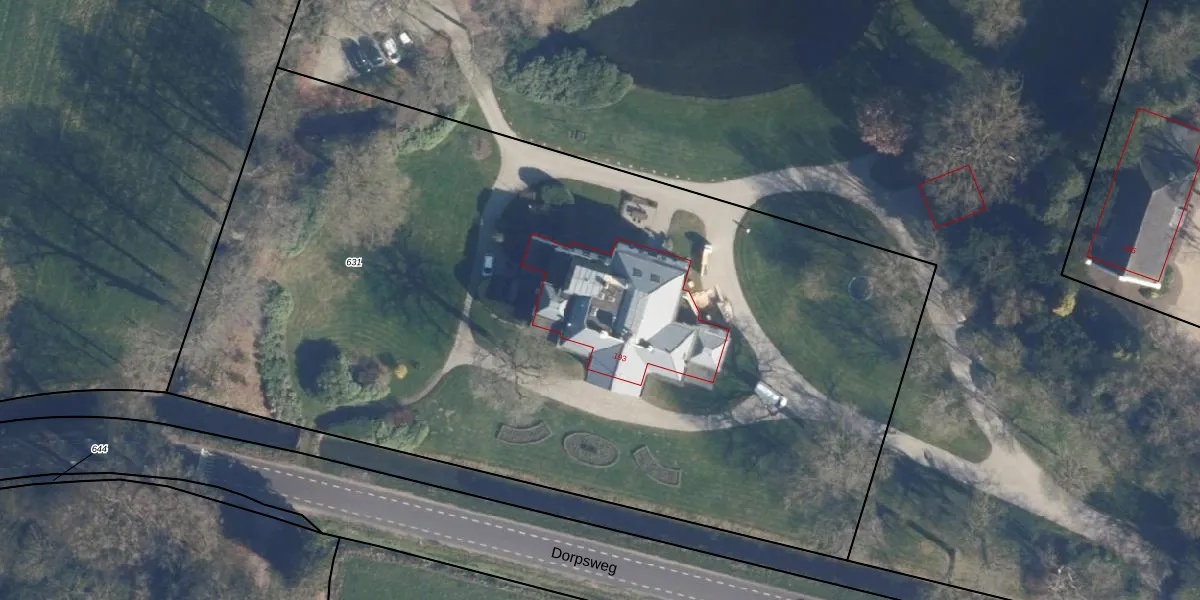 Het perceel waarop Dorpsweg 193 staat heeft een oppervlakte van 6300 m². Dit is een zeer groot perceel. De perceeloppervlakte wordt geregistreerd door het Kadaster. Gedetailleerde informatie over de maten van dit perceel kunt u vinden in het rapport Kadastrale kaart met maatvoering van Dorpsweg 193.
