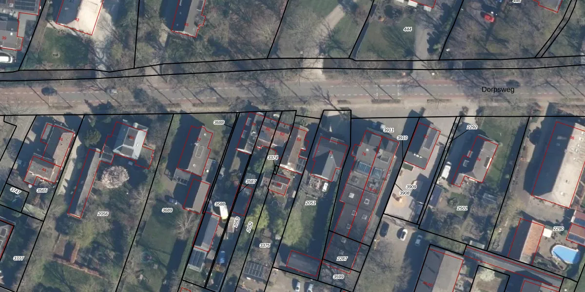Het perceel waarop Dorpsweg 64 staat heeft een oppervlakte van 597 m². Dit is een groot perceel. De perceeloppervlakte wordt geregistreerd door het Kadaster. Gedetailleerde informatie over de maten van dit perceel kunt u vinden in het rapport Kadastrale kaart met maatvoering van Dorpsweg 64.