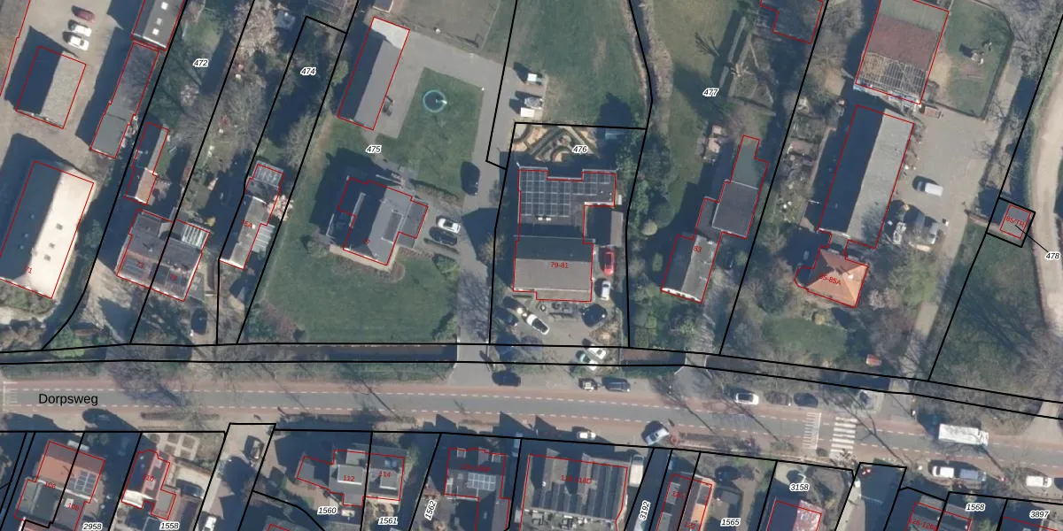 Het perceel waarop Dorpsweg 79 staat heeft een oppervlakte van 1040 m². Dit is een zeer groot perceel. De perceeloppervlakte wordt geregistreerd door het Kadaster. Gedetailleerde informatie over de maten van dit perceel kunt u vinden in het rapport Kadastrale kaart met maatvoering van Dorpsweg 79.