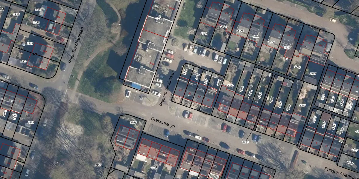 Gebruik de zoekbalk of klik op een perceel voor informatie over de adressen binnen dit perceel.