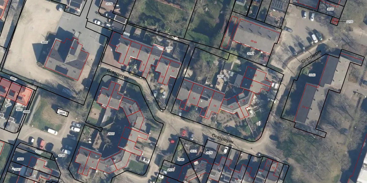 Het perceel waarop Graspieper 14 staat heeft een oppervlakte van 2025 m². Dit is een zeer groot perceel. De perceeloppervlakte wordt geregistreerd door het Kadaster. Gedetailleerde informatie over de maten van dit perceel kunt u vinden in het rapport Kadastrale kaart met maatvoering van Graspieper 14.