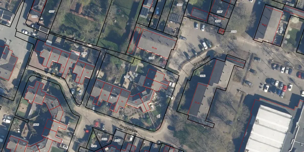 Het perceel waarop Graspieper 28 staat heeft een oppervlakte van 2025 m². Dit is een zeer groot perceel. De perceeloppervlakte wordt geregistreerd door het Kadaster. Gedetailleerde informatie over de maten van dit perceel kunt u vinden in het rapport Kadastrale kaart met maatvoering van Graspieper 28.