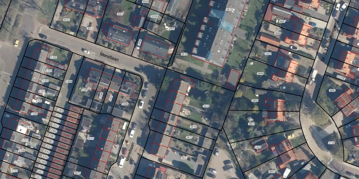 Het perceel waarop Merellaan 13 staat heeft een oppervlakte van 909 m². Dit is een groot perceel. De perceeloppervlakte wordt geregistreerd door het Kadaster. Gedetailleerde informatie over de maten van dit perceel kunt u vinden in het rapport Kadastrale kaart met maatvoering van Merellaan 13.
