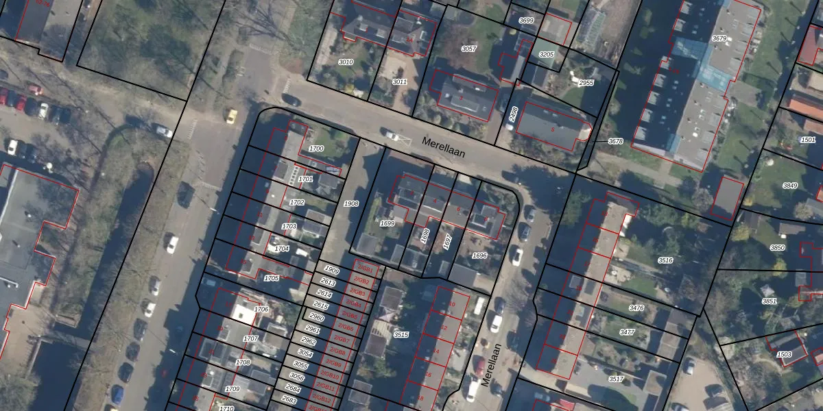Het perceel waarop Merellaan 2 staat heeft een oppervlakte van 348 m². Dit is een groot perceel. De perceeloppervlakte wordt geregistreerd door het Kadaster. Gedetailleerde informatie over de maten van dit perceel kunt u vinden in het rapport Kadastrale kaart met maatvoering van Merellaan 2.