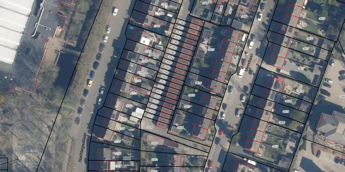 Het perceel waarop Merellaan 2-GB14 staat heeft een oppervlakte van 50 m². Dit is een klein perceel. De perceeloppervlakte wordt geregistreerd door het Kadaster. Gedetailleerde informatie over de maten van dit perceel kunt u vinden in het rapport Kadastrale kaart met maatvoering van Merellaan 2-GB14.